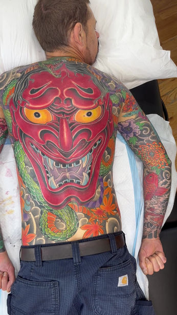 Chris Collinsworth works directly with clients to create body art based on their input, but also provides guidance and artistic vision for the process. I believe you should pick an artist based on how their style fits your unique needs. Make the tattoo of your dreams come true. His favorite styles of tattooing consists of Japanese, traditional, and neo-traditional dot work, stippling, and illustration art. Bold bright colors and enjoys black work or black and grey also.